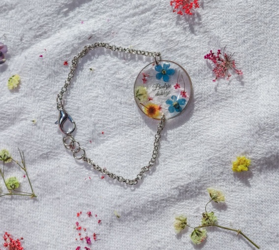 Bransoletka "Przypomnienie" to delikatna bransoletka, która codziennie będzie Ci przypominała, że będzie dobrze. Zatopione w żywicy prawdziwe kwiaty – niezapominajka, dzika marchew, mimoza i biała gipsówka – tworzą lekką, kolorową kompozycję, która przyciąga wzrok, a jednocześnie niesie pozytywną energię. To wyjątkowy talizman – mała dawka dobra, którą możesz mieć zawsze przy sobie.