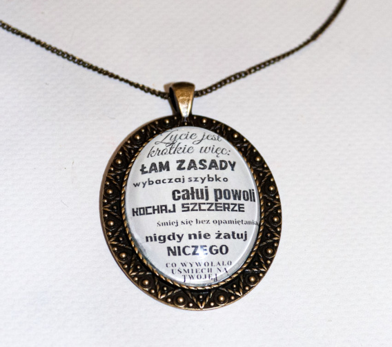 Zawieszka jest na długim łańcuszku byś mając ją na szyi mogła zawsze spojrzeć na pozytywne hasło i zaczerpnąć pozytywnej siły!