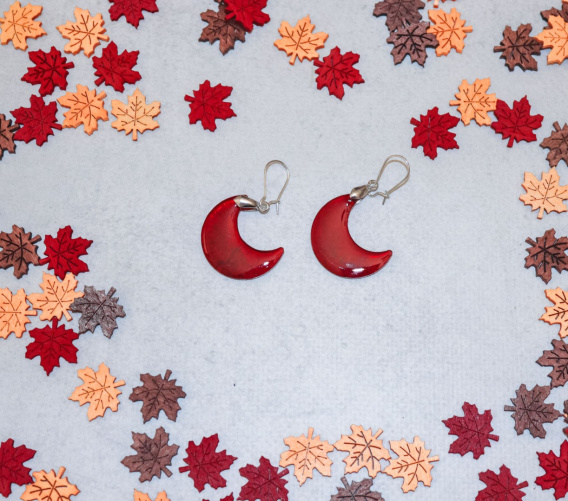 Kolczyki "Bordowy księżyc" wykonane są z żywicy zabarwionej na jeden z najpiękniejszych kolorów jesieni - bordowy. Ich kształt i koloryt sprawiają, że ten biżuteryjny dodatek wyróżnia się spośród innych a także pasuje do wielu różnych stylizacji i kolorów ubrań. Kolczyki są bardzo lekkie!