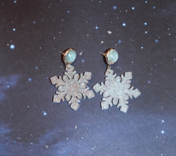 Kolczyki "Brokatowa zima" to idealna biżuteria na zimę, która doda Twojej stylizacji niepowtarzalnego uroku. Śnieżynki wypełnione są brokatem co zdecydowanie przyciąga wzrok. Kolczyki dzięki brokatowi pod kątem wydają się być niebieskie a pod drugim białe - jak prawdziwe śnieżynki (zobacz na zdjęciach)!