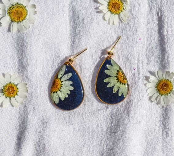 Kolczyki „Kropla ciszy” to mała oaza spokoju, którą możesz mieć zawsze przy sobie. W krystalicznej kropli żywicy, na granatowym tle niczym nocne niebo, zostały zatopione połówki prawdziwego rumianku – kwiatu symbolizującego ukojenie, harmonię i delikatność. To biżuteria dla tych, którzy w codziennym pędzie szukają chwili ciszy, oddechu i wewnętrznego balansu. „Kropla ciszy” to piękny pomysł na prezent dla kogoś, komu chcesz podarować odrobinę ukojenia – albo dla siebie, jeśli marzysz o tym, by każdego dnia przypominać sobie, że wszystko jest dokładnie takie, jakie powinno być.
