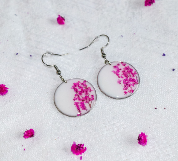 Kolczyki "Kwiatowa porcelana" to subtelny i kobiecy dodatek, który doda uroku każdej stylizacji. Ich delikatne okrągłe zawieszki na białym tleniezwykle eleganckie i uniwersalne, pasując zarówno do casualowych outfitów jak i bardziej formalnych kreacji. Wykonane z dbałością o detale kolczyki "Kwiatowa porcelana" zachwycają drobnymi kwiatami dzikiej marchwi barwionymi na różowo. Ta romantyczna kompozycja sprawia, że biżuteria ta doskonale podkreśli delikatność i kobiecość każdej kobiety. Idealne jako prezent dla bliskiej osoby lub jako nagroda dla samej siebie. Bądź wyjątkowa z kolczykami "Kwiatowa porcelana"!