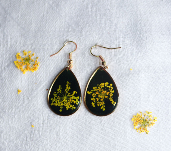 Kolczyki "Szmaragdowe złoto" zachwycą każdą kobietę swoim wyjątkowym designem i niezwykłą elegancjąZawieszki w kształcie łezki nadają kolczykom delikatności i subtelności, jednocześnie dodając im nutkę romantyzmu. Tło w intensywnej butelkowej zieleni sprawia, że kolczyki są nie tylko piękne, ale także modne - idealne do noszenia na co dzień oraz od święta. To jednak nie koniec ich uroku! Prawdziwy suszony kwiat dzikiej marchwi barwiony na żółto stanowi centralny punkt tych wyjątkowych kolczyków. Dzięki niemu biżuteria nabiera unikalnego charakteru i staje się niepowtarzalna. Kwiat ten symbolizuje delikatność, naturę oraz piękno otaczającego nas świata. Kolczyki "Szmaragdowe złoto" doskonale komponują się zarówno z eleganckimi wieczorowymi stylizacjami, jak i codziennymi outfitami. Jeśli szukasz czegoś wyjątkowego dla siebie lub chcesz obdarować nim bliską osobę - kolczyki "Szmaragdowe złoto" spełnią Twoje oczekiwania.