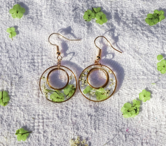 Kolczyki "Wiosna na okrągło" to subtelny i dziewczęcy dodatek, który doda uroku każdej stylizacji. Wykonane z prawdziwych płatków ozdobnej zielonej hortensji oraz dzikiej marchwi, które zostały zatopione w klarownej żywicy, te kolczyki są niezwykle oryginalne i przyciągają spojrzenia. Nietypowy kształt z dziurką w środku nadaje biżuterii unikalnego charakteru i sprawia, że będą one doskonałym dopełnieniem zarówno casualowych, jak i bardziej eleganckich outfitów. Kolczyki "Wiosna na okrągło" to idealny wybór dla kobiet ceniących sobie delikatność i subtelną elegancję. Doskonale sprawdzą się jako prezent dla bliskiej osoby lub jako sposób na podkreślenie swojego własnego stylu. Dodaj odrobinę wiosennego uroku do swojej garderoby dzięki tym wyjątkowym kolczykom!