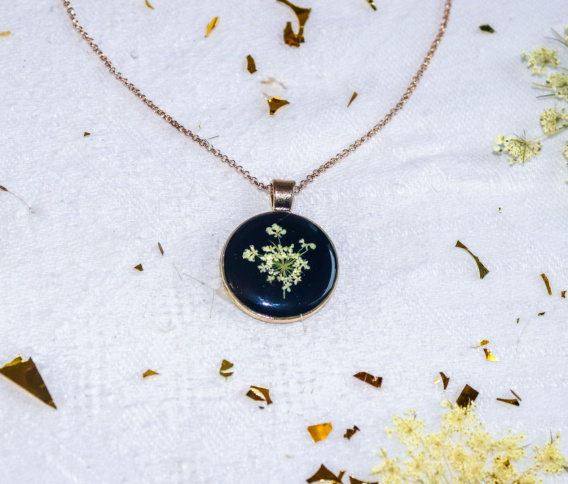 Naszyjnik "Elegancka czerń" to doskonały dodatek do każdej stylizacji, który doda Ci elegancji i wyrafinowania. Czarne tło tego naszyjnika stanowi idealny kontrast dla delikatnego kwiatu dzikiej marchwi. Ażurowy wzór kwiatu nadaje całości lekkości i subtelności, co sprawia, że naszyjnik jest zarówno efektowny, jak i bardzo kobiecy. To niezwykle uniwersalny element biżuterii, który świetnie sprawdzi się zarówno na co dzień, jak i od święta. Naszyjnik "Elegancka czerń" doskonale podkreśli Twój indywidualny styl oraz osobowość. Jest subtelny, ale jednocześnie zwraca uwagę swoim unikalnym designem. Doskonale sprawdzi się jako prezent dla bliskiej osoby lub jako nagroda dla samej siebie za osiągnięcia czy ważne momenty w życiu. Zamów już dziś naszyjnik "Elegancka czerń" i poczuj się wyjątkowo! Dzięki niemu Twoje codzienne stylizacje nabiorą nowego charakteru, a Ty będziesz promienna i pełna pewności siebie!
