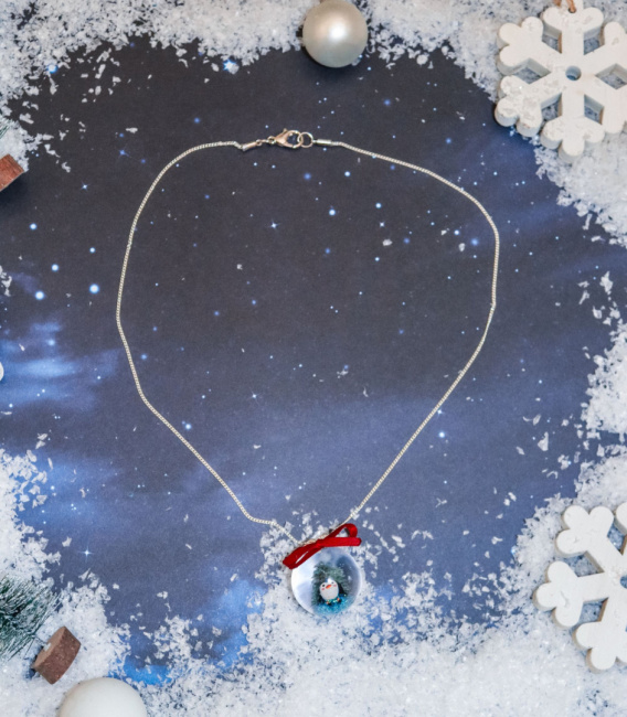 Miałaś w dzieciństwie magiczną kulę, którą się potrząsało i padał w niej śnieg? Naszyjnik "Magiczna kula" to wyjątkowy i uroczy dodatek, który wprowadzi magię do Twojej garderoby. W kuli znajdziesz sztuczny śnieg, choinkę oraz małego uroczego pingwinka a zdobiąca kulę czerwona kokardka dodaje jej jeszcze większego uroku. Magia zamknięta w tej kuli przeniesie Cię do zimowego krajobrazu pełnego świecących gwiazd, białego puchu na drzewach i urokliwej atmosfery świąt Bożego Narodzenia. Nie czekaj! Dodaj trochę magii do swojego życia dzięki naszyjnikowi "Magiczna kula". Bądź wyjątkowa, bądź magiczna!