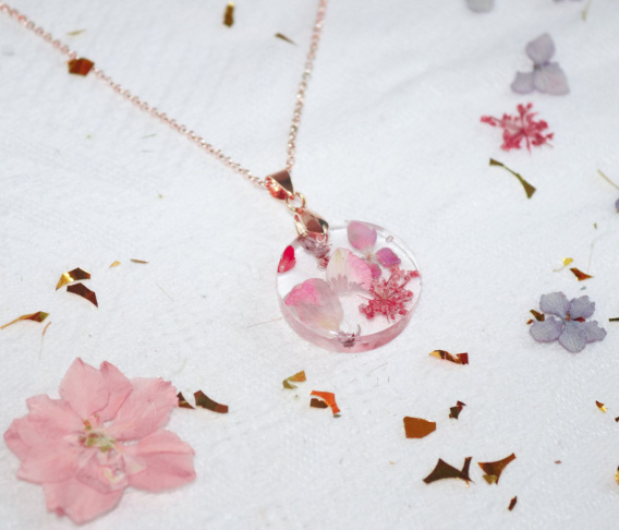 Naszyjnik "Różowo mi" to delikatny, dziewczęcy dodatek, który doda uroku każdej stylizacji. W żywicy zostały zatopione prawdziwe kwiaty gliksji, barwionej dzikiej marchewki i wiśni. Ten unikalny naszyjnik doskonale sprawdzi się jako prezent dla kobiety lub dziewczyny, która ceni sobie naturalne piękno i oryginalność. Dzięki swojej delikatnej konstrukcji oraz romantycznemu designowi będzie idealnym dodatkiem do letnich sukienek, swetrów czy koszulek. Zamawiając naszyjnik "Różowo mi", otrzymujesz nie tylko piękny dodatek do swojej garderoby, ale także fragment natury zamknięty w formie biżuterii. To doskonała propozycja dla wszystkich kobiet poszukujących czegoś wyjątkowego i nietuzinkowego. Pozwól sobie na odrobinę luksusu i magii kwiatów dzięki temu uroczemu naszyjnikowi!