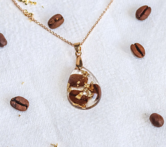 Naszyjnik "Złote espresso" jest dla wszystkich, którzy nie wyobrażają sobie dnia bez aromatycznej filiżanki i chcą zabrać tę miłość ze sobą wszędzie. Naszyjnik „Złote Espresso" to wyjątkowe połączenie prawdziwych ziaren kawy i złotej folii, zatopionych w kropli krystalicznej żywicy. Każdy detal tej kompozycji symbolizuje coś więcej niż tylko piękno - to hołd dla codziennych rytuałów, energii działania i małych przyjemności, które dają wielką moc.Ten naszyjnik będzie idealnym prezentem dla miłośniczki kawy, dla siebie - na dobry początek dnia, lub jako talizman twórczej energii i kobiecej siły.
