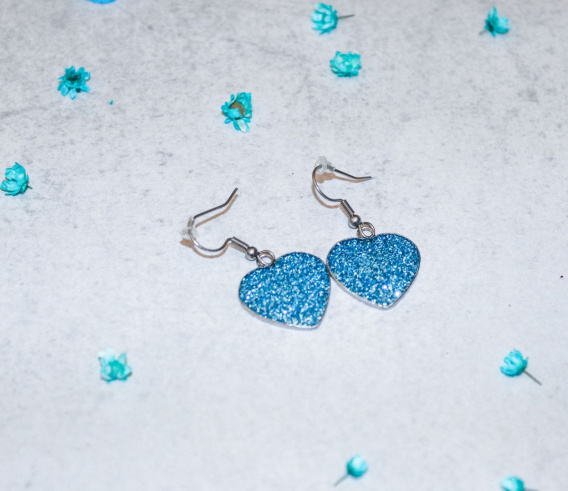 Srebrne kolczyki 'Brokatowa miłość', wersja niebieska