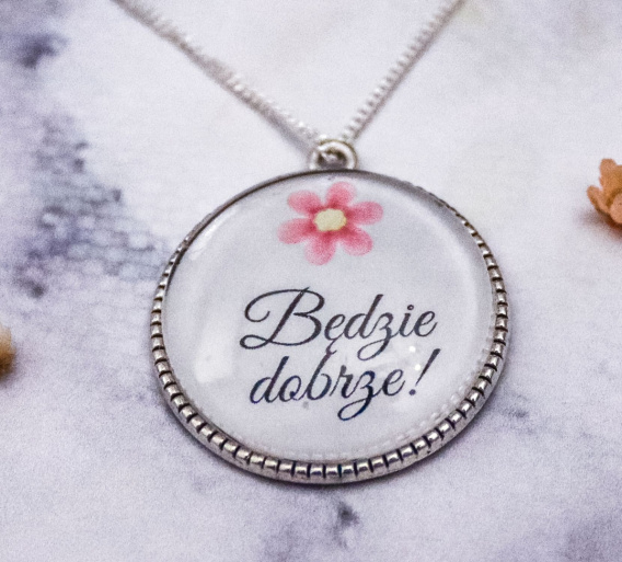 • Srebrny naszyjnik "Będzie dobrze!" z kwiatkiem