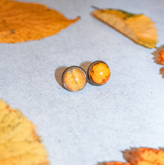 Sztyfty "Złota jesień" to idealny dodatek, który doda elegancji i wyjątkowego uroku Twoim codziennym stylizacjom. Ich największym atutem jest zatopiony w żywicy prawdziwy żółty liść, który nadaje im naturalnego charakteru i sprawia, że każdy egzemplarz jest unikalny.