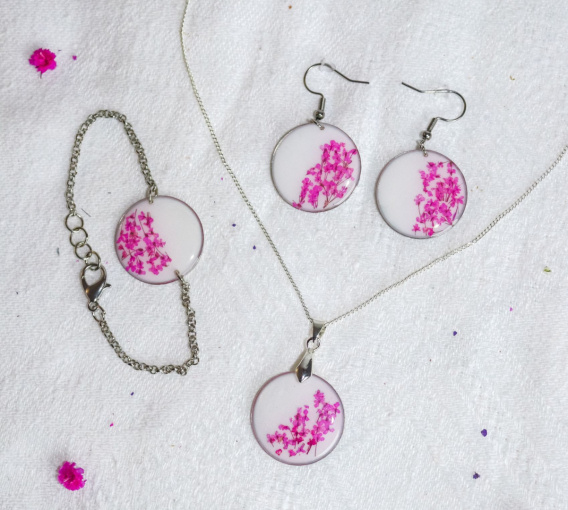 Kolekcja pełna koloru jest pełna różnorodności - różne kolory, różne kształty, różne kwiaty! To wyjątkowa ręcznie robiona biżuteria, idealna dla kobiet ceniących sobie wyjątkowość i indywidualizm. Prawdziwe suszone kwiaty użyte do stworzenia tej kolekcji sprawiają, że jest ona niepowtarzalna i pełna naturalnego uroku. Zachowują swoje pierwotne piękno na dłużej, dzięki czemu będziesz mogła cieszyć się nimi przez wiele sezonów.
