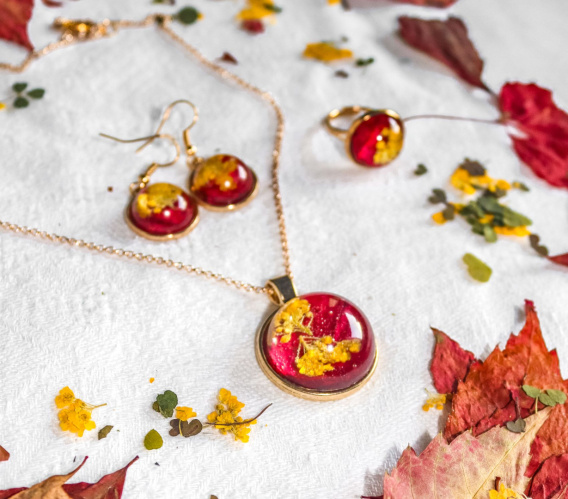Jesień to czas pełen magii - złote liście opadające z drzew tworzą niesamowitą atmosferę. Wyobraź sobie, że możesz nosić kawałek jesieni na szyi i mieć przy sobie trochę jesiennej magii przez cały rok. Właśnie tym charakteryzuje się ta kolekcja - zatopiłam dla Ciebie fragmenty jesieni w żywicy!