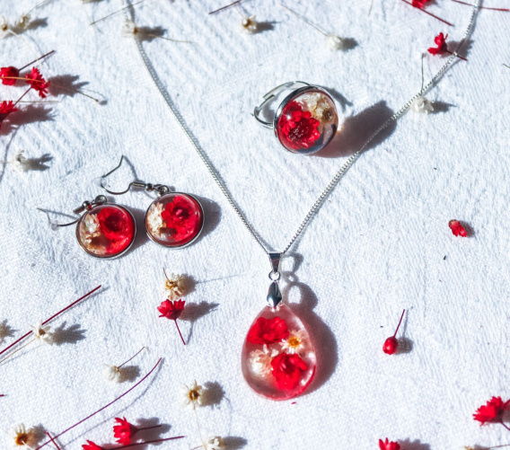 Zestaw "Polskie lato" to wyjątkowy dodatek do Twojej kolekcji biżuterii. Został stworzony z myślą o miłośniczkach natury i piękna. Prawdziwe czerwone i białe kwiaty gliksja zostały zanurzone w krystalicznie przezroczystej żywicy, tworząc niepowtarzalny efekt. To zestaw, który przyciąga spojrzenia i zachwyca swoim delikatnym wzornictwem. Kwiaty gliksja symbolizują radość, urodę oraz subtelność - idealne wartości do wyrażenia poprzez biżuterię. Dzięki połączeniu naturalnych elementów z nowoczesnym designem, zestaw ten doskonale sprawdzi się zarówno na co dzień, jak i na specjalne okazje. Wykonany z dbałością o najmniejsze detale, zestaw "Polskie lato" jest pięknym dodatkiem do stroju. Każdy egzemplarz jest unikatowy dzięki różnorodności kształtów i rozmiarów kwiatów gliksja. Daj sobie możliwość noszenia ze sobą kawałka natury i poczuj bliskość ziemi nawet w miejskiej dżungli. Zestaw "Polskie lato" to więcej niż biżuteria - to manifestacja miłości do otaczającego nas świata.