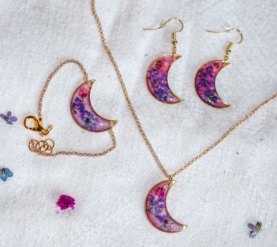 Zestaw "Różowa łuna" to niezwykłe połączenie delikatności i natury zamknięte w jednym wyjątkowym projekcie. Zawieszka w kształcie księżyca jest misternie wykonana, a jej design zachwyca subtelną elegancją. Różowe perłowe tło dodaje całości nutki luksusu, podkreślając piękno każdego detalu. To, co jednak sprawia, że zestaw "Różowa łuna" jest tak wyjątkowy, to prawdziwe kwiaty dzikiej marchwii, niezapominajki i gipsówki zatopione w przeźroczystej żywicy. Te naturalne elementy nadają biżuterii niepowtarzalnego charakteru oraz sprawiają, że nosząc ją na sobie czujesz się blisko natury. Zestaw ten doskonale sprawdzi się jako unikalny dodatek do codziennych stylizacji, dodając im subtelności i oryginalności. Może również stanowić doskonały prezent dla osoby bliskiej lub być wyrazem Twojej własnej indywidualności. Każdy element zestawu "Różowa łuna" został wykonany z dbałością o najmniejsze detale ze starannością o jakość materiałów użytych do produkcji. Dzięki temu masz pewność, że nosisz biżuterię wysokiej jakości stworzoną z pasją i zaangażowaniem. Zamów już dziś zestaw "Różowa łuna" i wprowadź do swojej kolekcji biżuterii odrobinę magii natury!