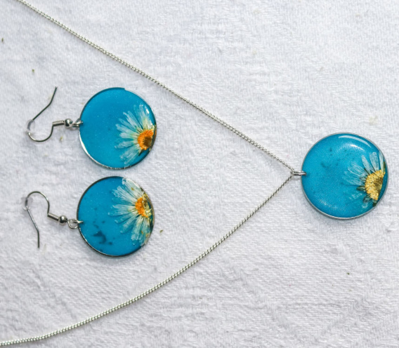 Zestaw "Słoneczne niebo" przeniesie Cię w magiczny świat letnich dni i błękitnego nieba. Okrągła zawieszka tego zestawu z tłem o pięknym niebieskim odcieniu, przypomina czysty błękit nieba w słoneczny dzień. To idealna ozdoba dla każdej kobiety, która ceni sobie naturalne piękno i unikatowe akcenty. Co sprawia, że zestaw "Słoneczne niebo" jest tak wyjątkowy? Otóż zawiera on prawdziwą suszoną stokrotkę zatopioną w żywicy, co nadaje mu delikatności i oryginalności. Ta subtelna roślina stanowi symboliczne odniesienie do lata - pory roku pełnej życia, słońca i radości. Nosząc ten zestaw , możesz poczuć się jakbyś nosiła ze sobą kawałek natury oraz promienie słoneczne na skórze. Zestaw "Słoneczne niebo" doskonale sprawdzi się jako prezent dla bliskiej osoby lub jako nagroda dla samej siebie za osiągnięcia czy ważne momenty w życiu. Zamów już dziś zestaw "Słoneczne niebo" i wprowadź trochę letniego nastroju do swojej garderoby!
