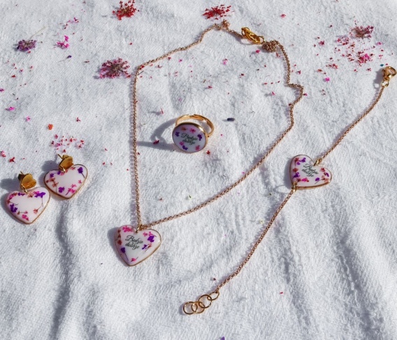 Delikatny zestaw "Słowo otuchy" z serduszkiem przypomni Ci, że będzie dobrze – nawet w trudniejszych chwilach. Na białym tle zatopiłam drobne kwiaty dzikiej marchwi w odcieniach czerwieni, różu i fioletu, tworząc kompozycję pełną ciepła, nadziei i subtelnej energii. To biżuteria, która jest nie tylko ozdobą, ale też małym wsparciem na co dzień – noszonym blisko serca.