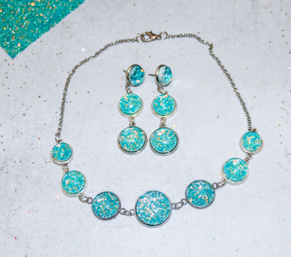 Zestaw "Sylwestrowy glam" to idealny dodatek dla wszystkich, którzy chcą błyszczeć na sylwestrowej imprezie. Ten wyjątkowy zestaw to szklane kaboszony naklejone na wysokiej jakości arkusz brokatowy, który doda Twojej stylizacji niepowtarzalnego blasku i elegancji. Brokatowe elementy zestawu odbijają światło, tworząc efektowne refleksy, które przyciągną uwagę wszystkich do Ciebie. To doskonały sposób na wyróżnienie się w tłumie i poczucie pewności siebie podczas najważniejszej nocy roku. Zestaw "Sylwestrowy glam" został starannie zaprojektowany tak, aby pasował do różnych stylizacji. Możesz go nosić zarówno z elegancką sukienką wieczorową, jak i z jeansami - będzie prezentować się równie efektownie.