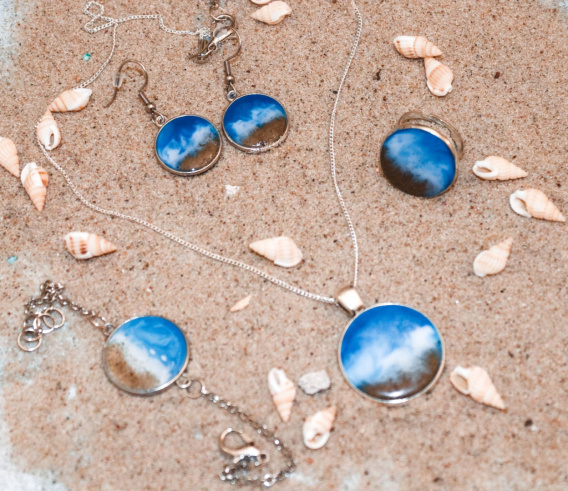 Zestaw WODA to wyjątkowa biżuteria, która wprowadzi do Twojej garderoby nutkę magii i tajemniczości. Zestaw skupia się na żywiole wody, który jest znany ze swojej siły i potęgi. Jego design przedstawia wzburzone morze, falę oraz piasek - wszystko to razem tworzy niesamowicie dynamiczny obrazek. Fale malowane są żywicą epoksydową a poniżej zatopiony jest prawdziwy piasek znad polskiego morza. Zamów już dziś zestaw WODA i poczuj moc natury na swojej skórze. Dzięki tej wyjątkowej biżuterii będziesz emanować pewnością siebie i przyciągać uwagę wszystkich wokół Ciebie.