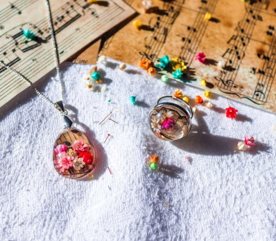 Zestraw "Wiosenna nuta" to subtelny i delikatny dodatek, który doda uroku każdej stylizacji. Zawieszka w kształcie łezki jest niezwykle elegancka i kobieca, idealna dla osób ceniących sobie minimalistyczne wzornictwo. Zanurzone w żywicy kwiaty i nuty nadają zestawowi "Wiosenna nuta" wyjątkowego charakteru. Kwiatowe motywy sprawiają, że naszyjnik emanuje świeżością i lekkością. Zestaw "Wiosenna nuta" to doskonały pomysł na prezent dla bliskiej osoby lub upominek dla samego siebie. Może być noszony zarówno na co dzień do casualowych stylizacji jak i na specjalne okazje, dodając im subtelnego uroku.