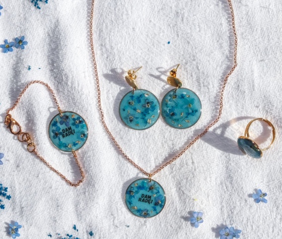 Delikatny, a jednocześnie pełen siły. Zestaw „Moc wytrwałości” toosobista przypominajka, że dasz radę – nawet wtedy, gdy świat wystawia Cię na próbę. Okrągła zawieszka z niebieską żywicą skrywa inspirujący napis „Dam radę!” oraz prawdziwe kwiaty niezapominajki i dzikiej marchwi barwione na niebiesko. Całość dopełniają subtelne drobinki złotej folii, które dodają elegancji i blasku.